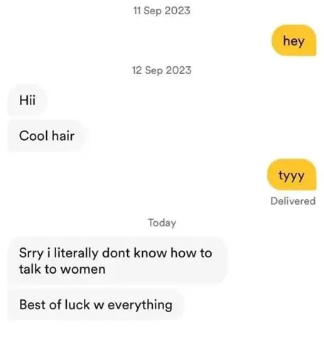 omg damn that’s me. i ended up sending a shitpost meme/pic of my dinner to a female co-student. still waiting for her response.