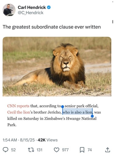 He’s still a lion, just with a [DEAD] modifyer tag.