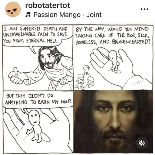 arrow-up11.04Karrow-down1imageJesus H. Christlemmy.mlComradeSharkfucker@lemmy.ml to Comic Strips@lemmy.worldEnglish · 4 days agomessage-square130linkfedilink