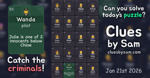 I solved the daily #CluesBySam, Jan 19th 2026 (Easy), in 03:40 🟩🟩🟩🟩 🟩🟩🟩🟩 🟩🟩🟩🟩 🟩🟩🟩🟩 🟩🟩🟩🟩 https://cluesbysam.com/I solved the daily #CluesBySam, Jan 19th 2026 (Easy), in 03:09 🟩🟩🟩🟩 🟩🟩🟩🟩 🟩🟩🟩🟩 🟩🟩🟩🟩 🟩🟩🟩🟩 https://cluesbysam.com/
