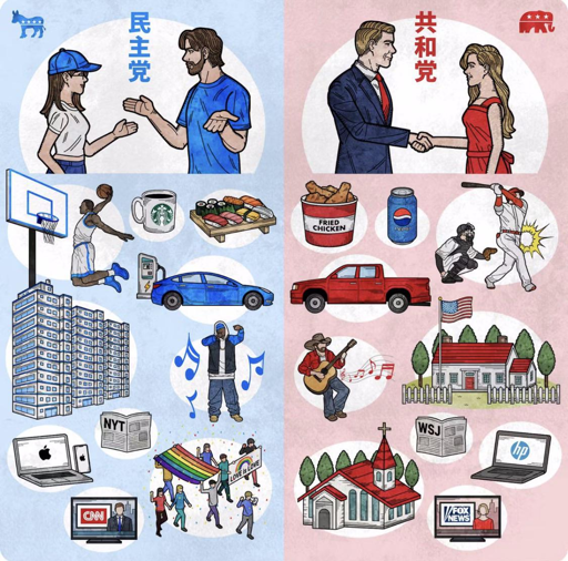 This feels like something thrown together by someone who spent and entire weekend learning about US political culture from memes, and I’m 50% certain this was drawn by AI.