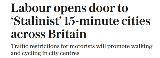 “[…] “perverse” and “Stalinist” approach to social control, adding: “It is an encroachment on civil liberties, and it is a page out of the East Germany playbook. With the 15-minute city, you will have to, in effect, apply for an internal passport to go and visit your granny.”