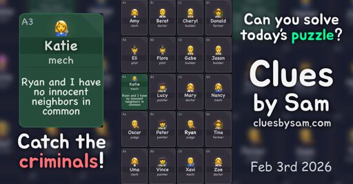 I solved the daily #CluesBySam, Feb 1st 2026 (Hard), in less than 16 minutes 🟩🟩🟩🟩 🟩🟩🟩🟩 🟩🟩🟩🟩 🟩🟩🟩🟩 🟩🟩🟩🟩 https://cluesbysam.com/#CluesBySam - Feb 1st 2026 (Hard) Less than 14 minutes 🟩🟩🟩🟩 🟩🟩🟩🟩 🟩🟩🟩🟩 🟩🟩🟩🟩 🟩🟩🟩🟩