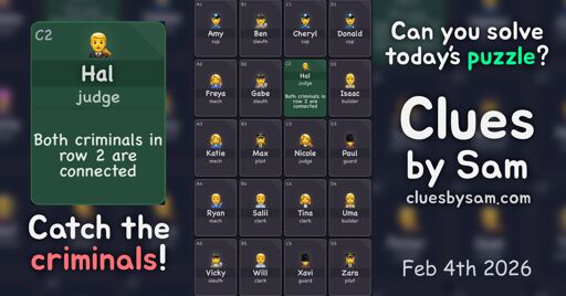 #CluesBySam - Feb 2nd 2026 (Easy) 01:52 🟩🟩🟩🟩 🟩🟩🟩🟩 🟩🟩🟩🟩 🟩🟩🟩🟩 🟩🟩🟩🟩