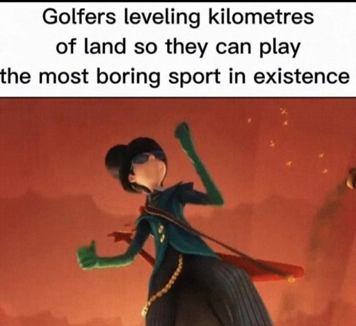 minus-squareLophostemon@aussie.zonelinkfedilinkarrow-up2·2 years agoThe original game as invented by bored semi-drunk Scots was, I’m sure, a good laugh several hundred years ago with wee sticks and a random round thing. The modern game and all its hideous capitalist/ classist cultural connotations is fucked.