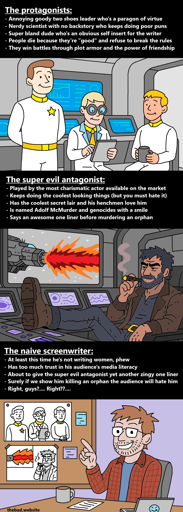 [a nerdy dude in flannel points at a storyboard of the two previous images] The naive screenwriter: