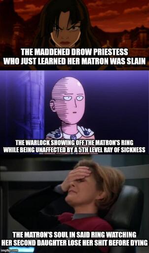 5·30 days agoHey, we just go through fighting an aspect of the Spider Queen (The local Lolth expy), in which I had my max HP cut in half and was the only one downed because of it. Was kinda fizzled at that point