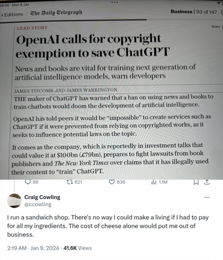 FatCat@lemmy.world to Technology@lemmy.worldEnglish · 1 year agoThe Irony of 'You Wouldn't Download a Car' Making a Comeback in AI Debatesplus-squarelemmy.worldimagemessage-square3linkfedilinkarrow-up18arrow-down10