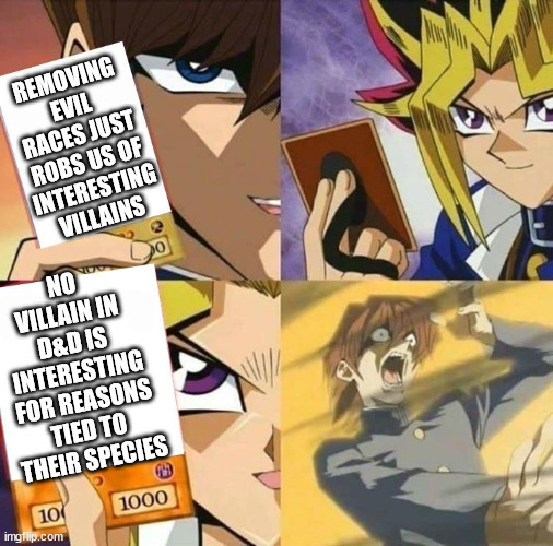 I wish it was true that this is only “people who only play D&D” problem but I have also seen those argument with people who participate in rpg online communities or forums where they know and play other games. I’ve seen videos whining about orcs come from same channel with something like a 100 reviews of various different rpgs. Sadly I do not think this is only people who only play D&D who are the problem here.