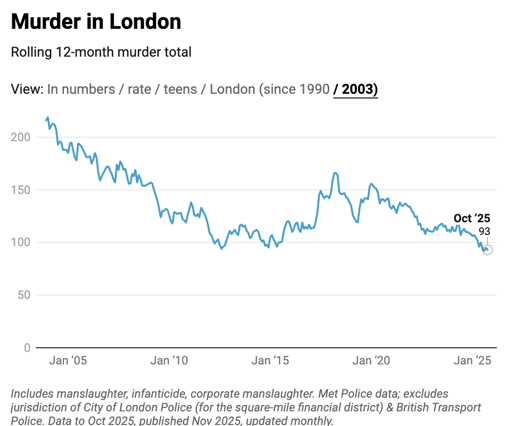 arrow-up1188arrow-down1image93 murders in London (pop: ~9million) in 12 months. London's murder rate is now at the lowest level for decadesplus-squarelemmy.worlddwouu@lemmy.world to Mildly Interesting@lemmy.world · edit-22 days agomessage-square8linkfedilink