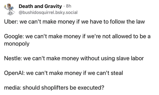 nothingcorporate@lemmy.todayOPtoPolitical Memes@lemmy.world•They had to watermark Ilhan Omar talking about ICE so right-wing streamers couldn't clip moments out of context69·2 days agoThis feels like an oversimplification – let’s not forget that billionaires have poured untold sums of money into funding right-wing propaganda…and that virtually every major platform is owned and operated by billionaires with right-wing agendas.